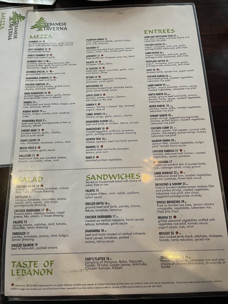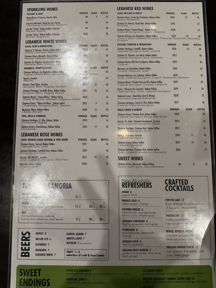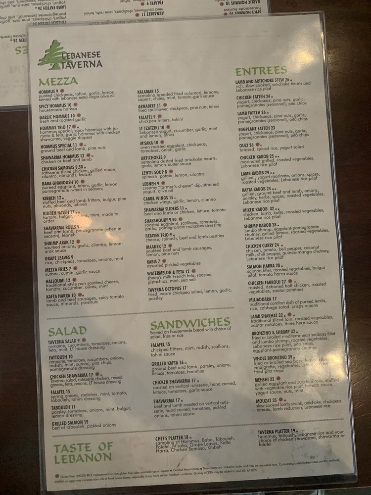 Lebanese Taverna offers a diverse menu of authentic Lebanese, vegetarian, and Mediterranean cuisine in a classy yet casual setting. The restaurant provides a range of amenities including reservations, delivery, takeout, vegan and vegetarian options, catering, and a full bar. With a prime location in Baltimore near the harbor, Lebanese Taverna has garnered positive reviews for its flavorful dishes such as the Hummus trio, Taverna platter, grape leaves, shawarma rolls, camel wings, and Awamat. Customers rave about the fresh hot pita bread and the friendly service provided by staff members like Nader, Izzie, and Iman. The elegant atmosphere and impeccable service make Lebanese Taverna a top choice for group gatherings, special events, or a memorable dinner experience.